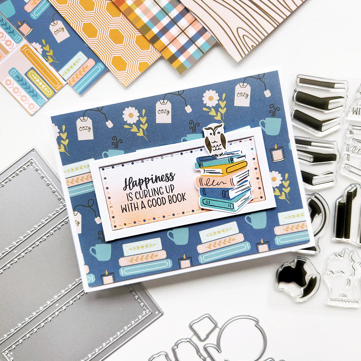 Inspired by winter colors and cozy wallpaper patterns, the Right at Home Patterned Paper features charming prints like shelves of books, tea cups, pretty plaids, and honeycomb textures. With a soothing Spa Color palette of Clay Mask, Amber, Green Tea, Wintergreen, Skylight, Glacier, and Cargo, this pack brings a calm to your projects. It’s the perfect collection to make your cards and crafts feel truly Right at Home.