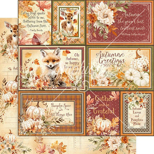 Embrace the cozy charm of the season with Graphic 45's new Autumn Greetings paper collection. This enchanting assortment captures the essence of fall through a rich and subdued color palette featuring olive green, burgundy, mocha brown, and a pop of orange. Delight in the whimsical imagery of adorable woodland animals, intricately designed fall leaves, and creamy pumpkins that evoke the warmth and beauty of autumn. Perfect for all your seasonal crafting needs, Autumn Greetings brings a touch of nature's splendor to your creative projects. This package contains 12x12 inch double-sided cardstock. Available in a vareity of designs, each sold separately.